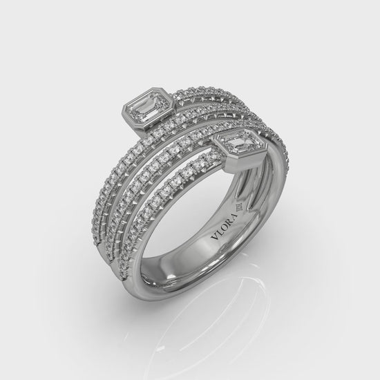 Diamond Three Row Diamond Baguette Wrap Ring