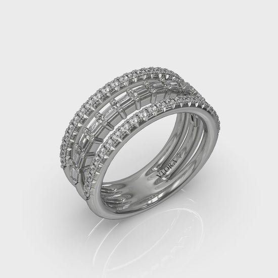 Diamond Open Three Row and Diamond Baguettes Ring