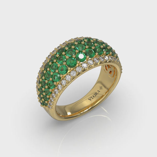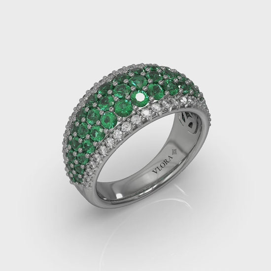 Diamond and Emerald Multi-Row Statement Ring