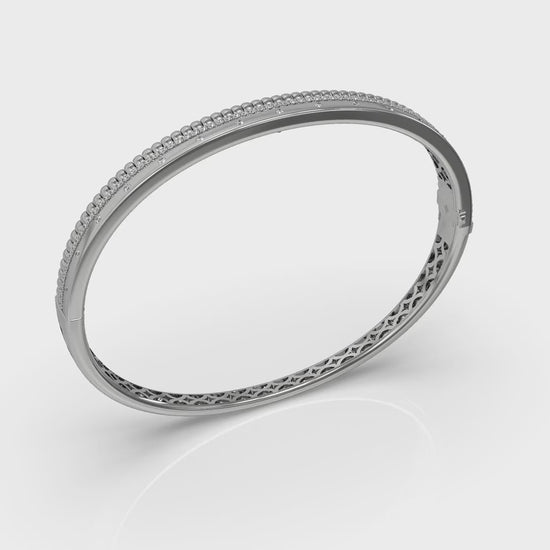 Like a delicate stack of two bracelets in one, this elegantly slim hinged bangle combines polish and sparkle. Slim enough to layer elegantly with a watch or other bracelets, it also has enough presence to stand alone. Elevate every day with a gleam on your wrist to match the confidence shining in your eyes.