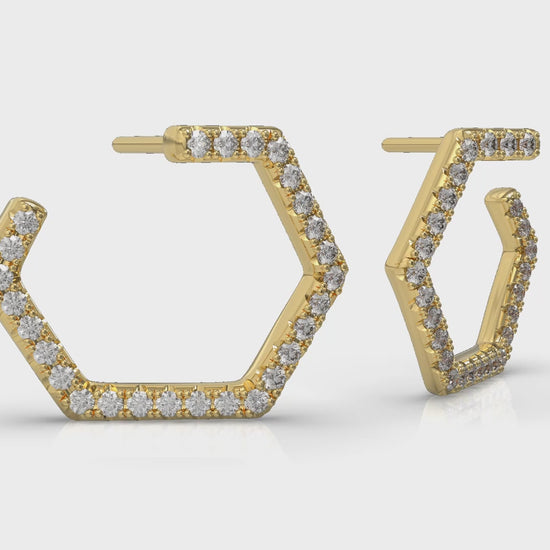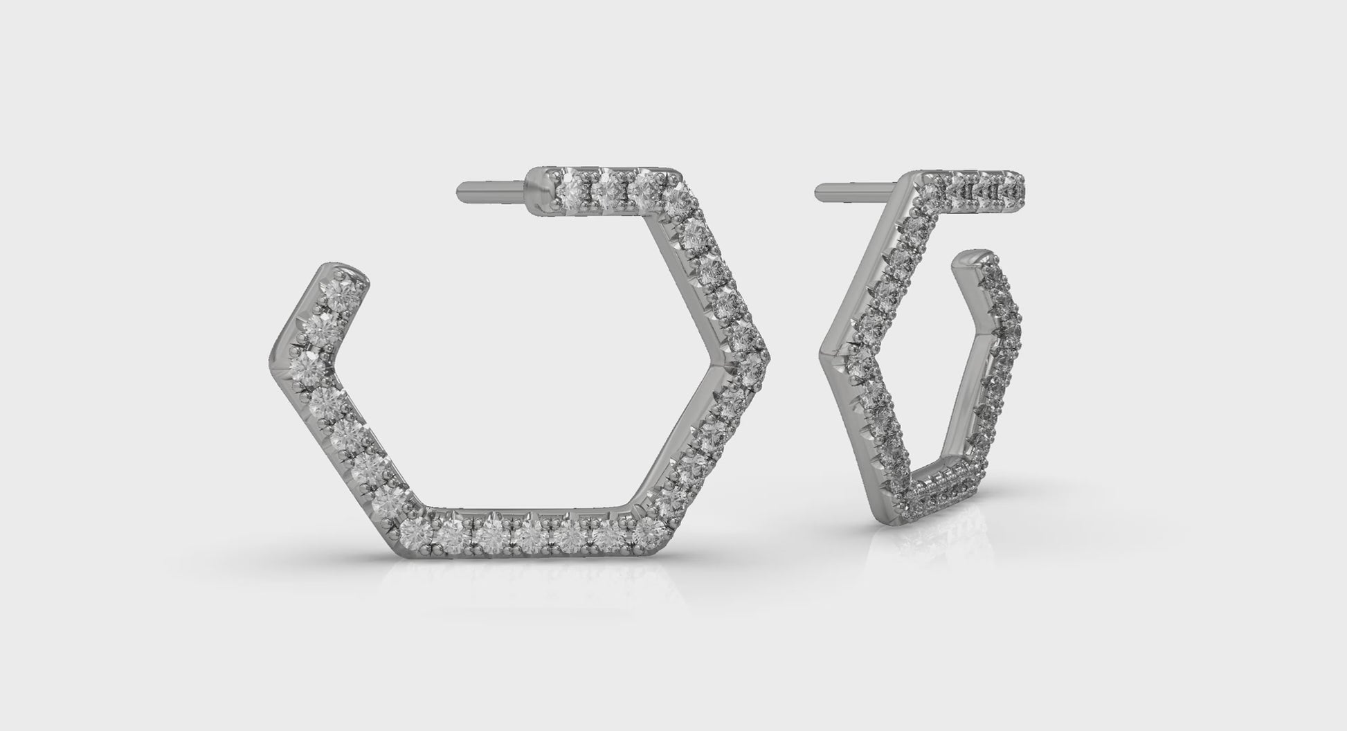 Diamond Forward-Facing Honeycomb Open Hoop Earrings