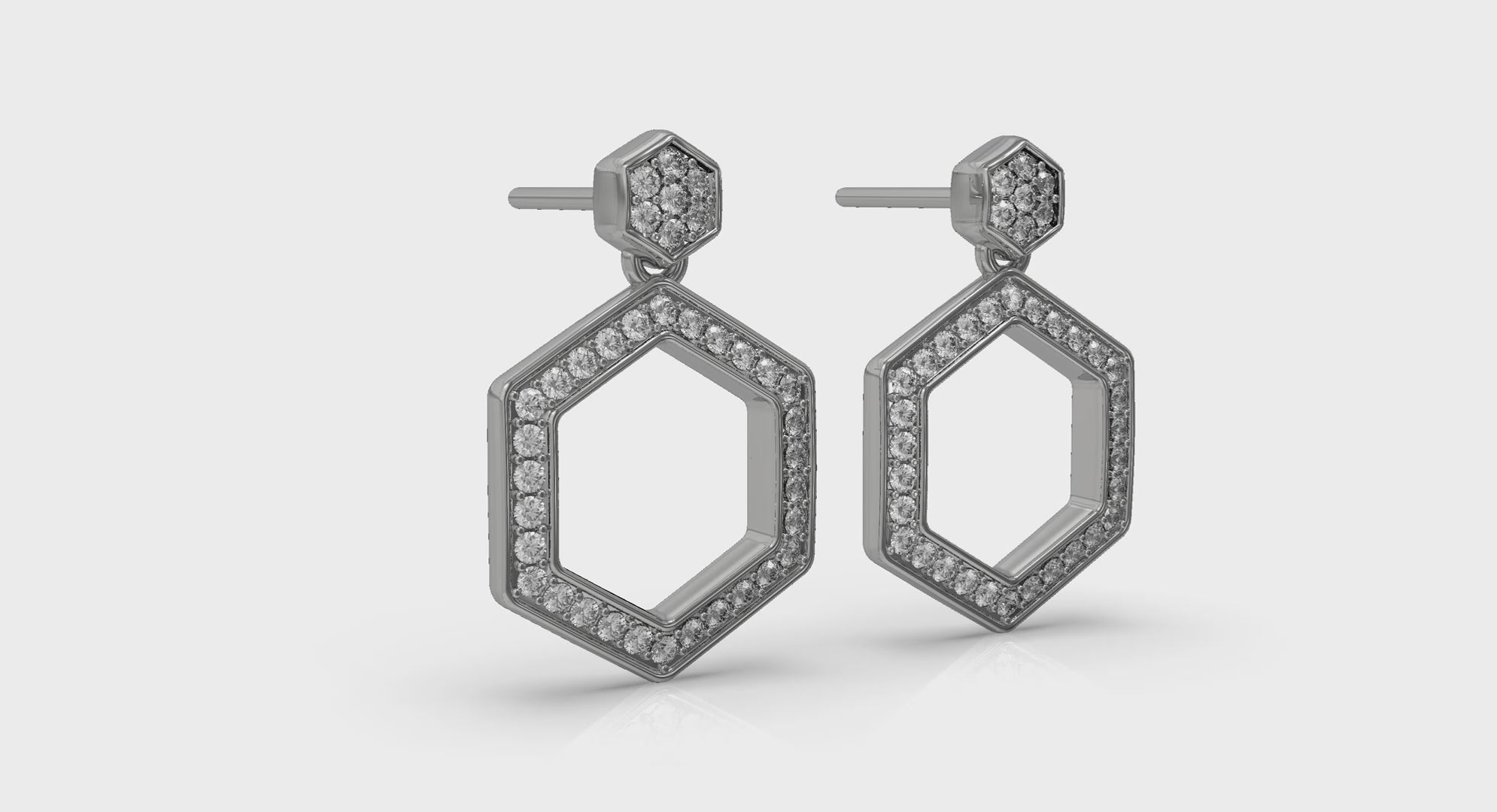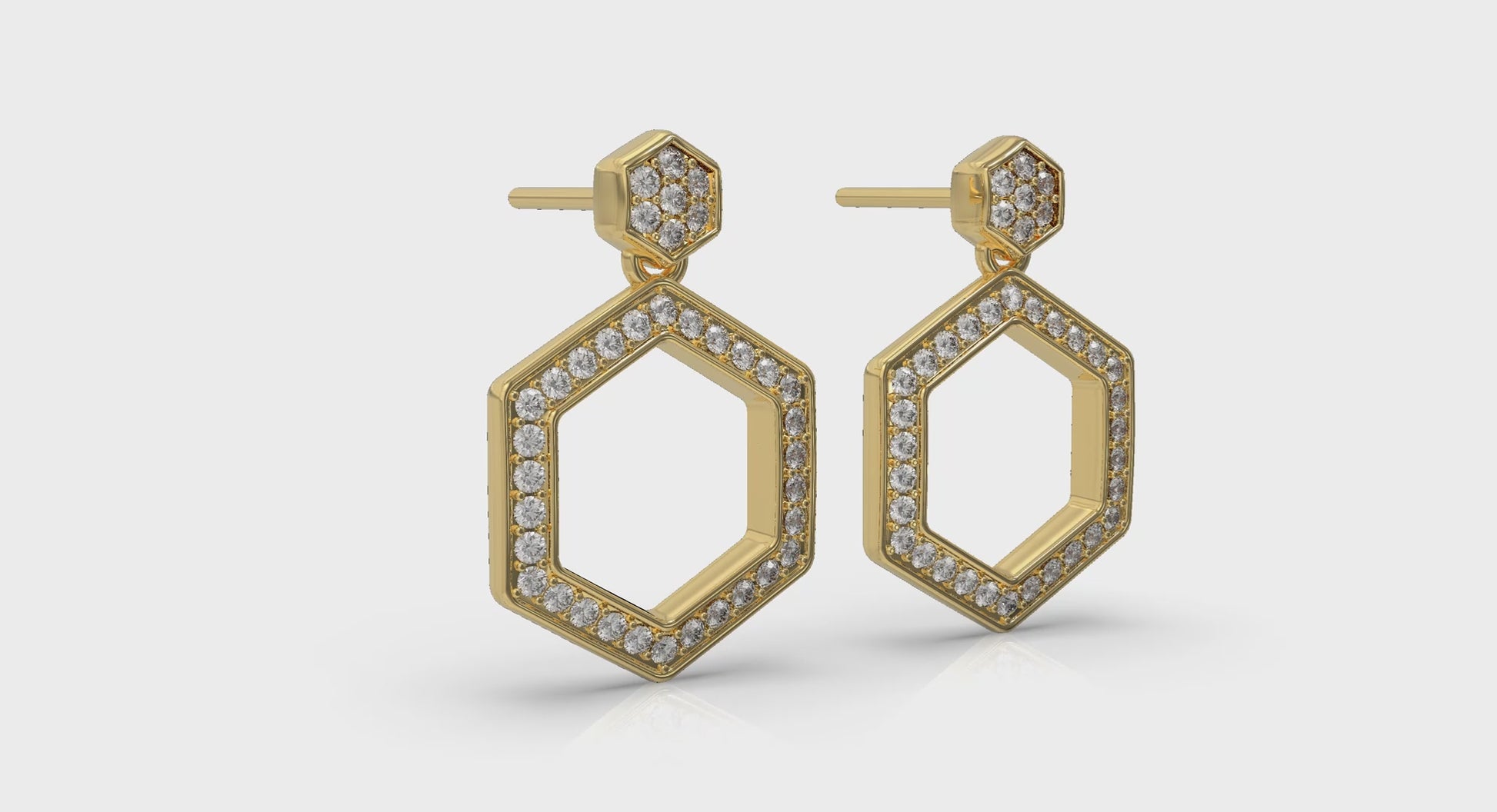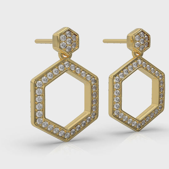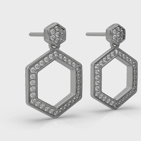 Channel Set Diamond Open Honeycomb Drop Stud Earrings