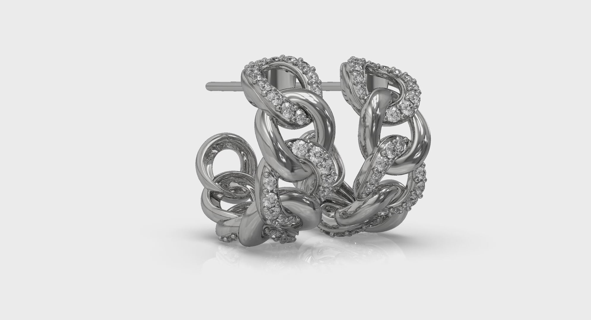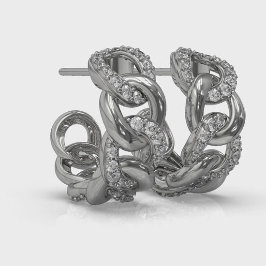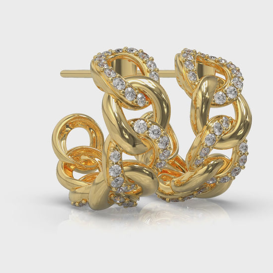 Alternating Diamond Link Huggie Hoop Earrings