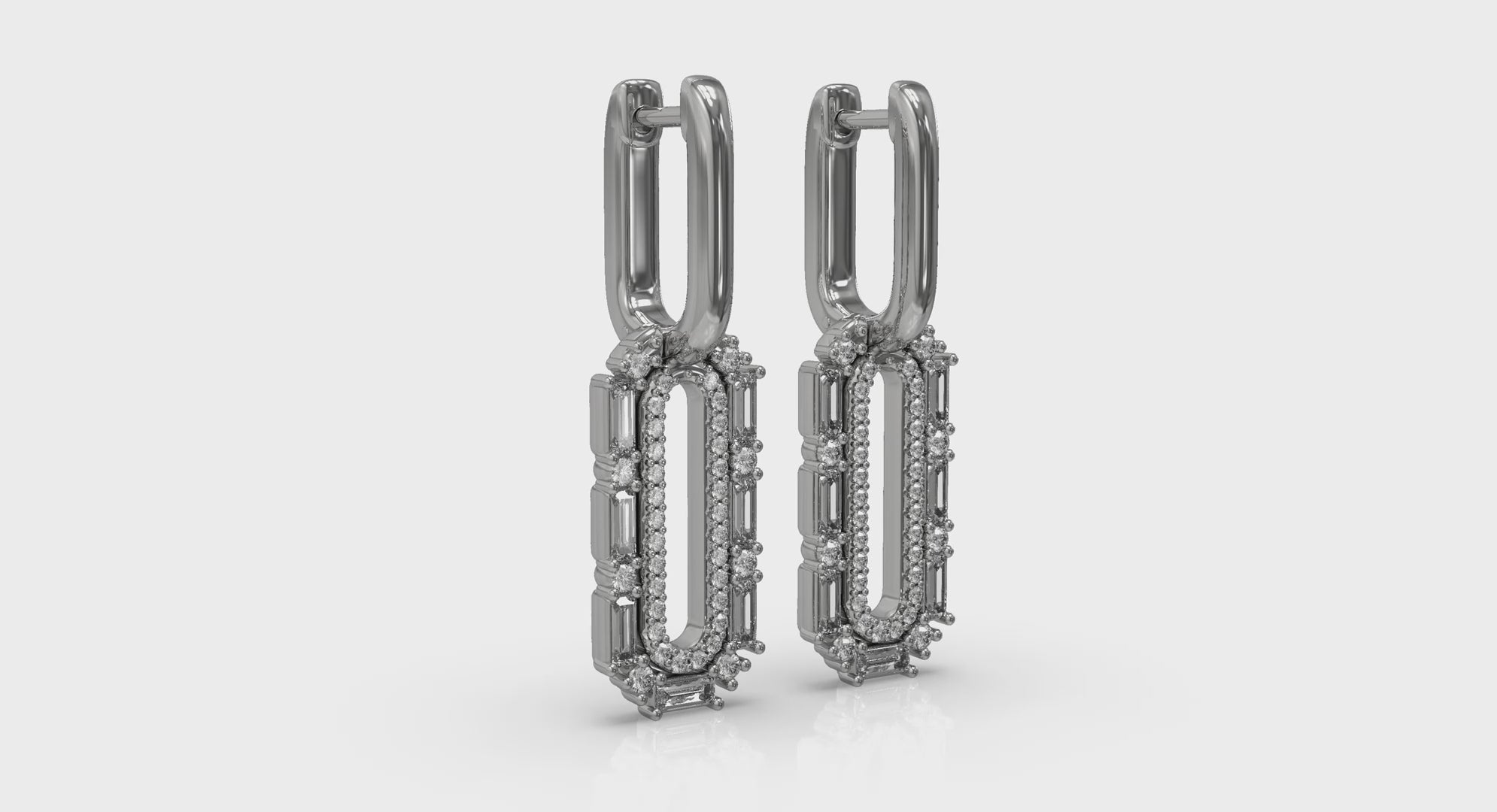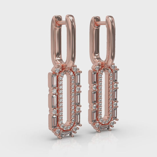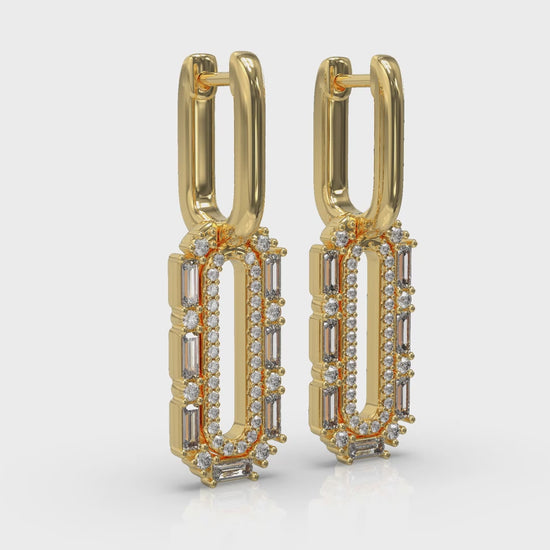 Diamond Baguette Double Row Link Drop Huggie Earrings
