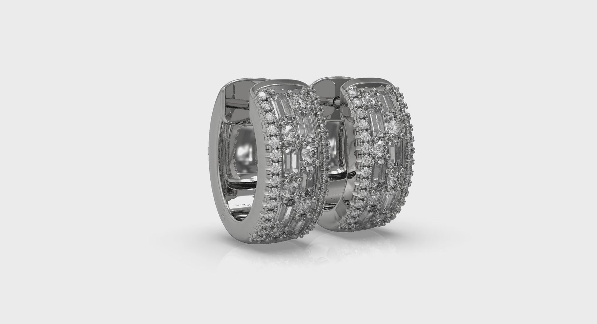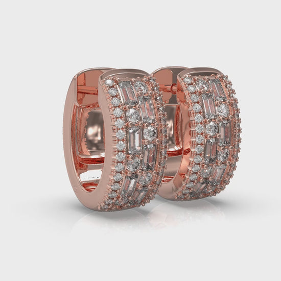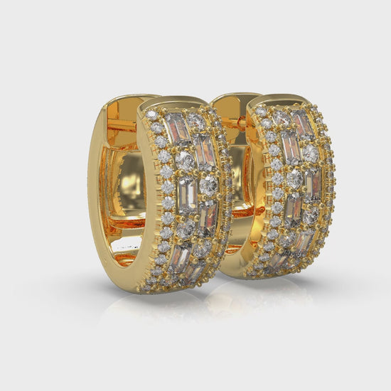 Diamond Baguette Multi Row Huggie Earrings