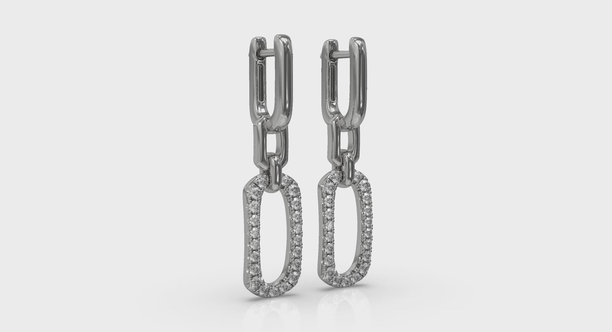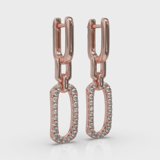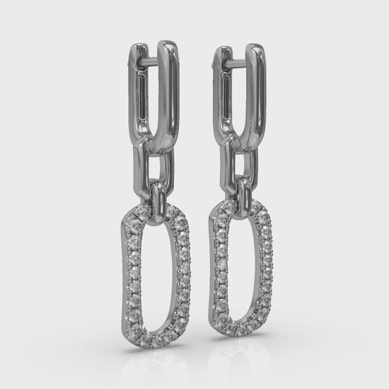 Diamond North South Open Oval Pendant Link Earrings