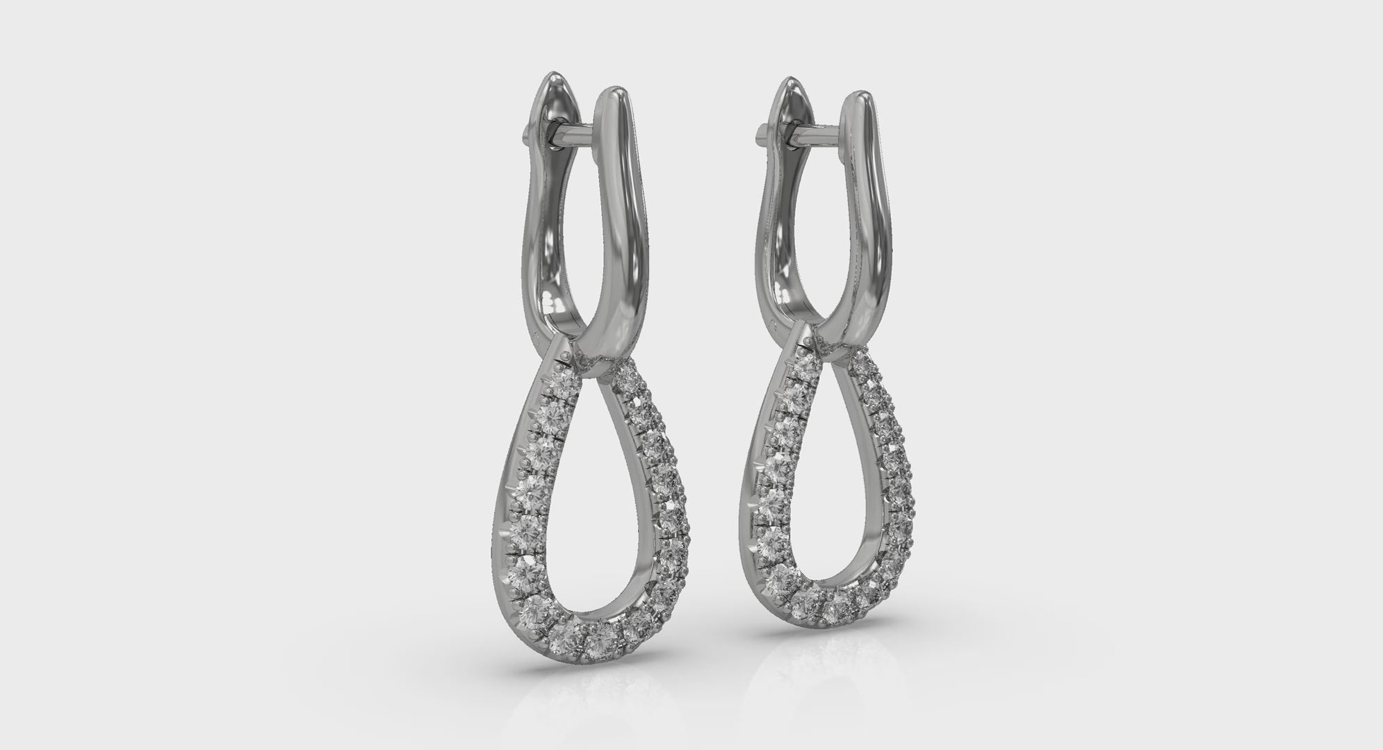 Diamond Open Tear Drop Link Earrings