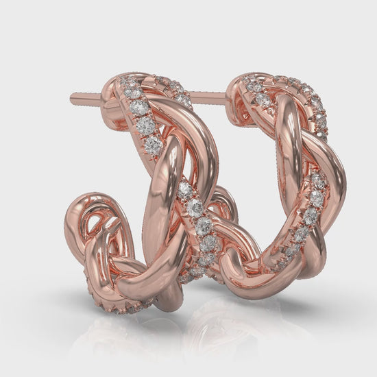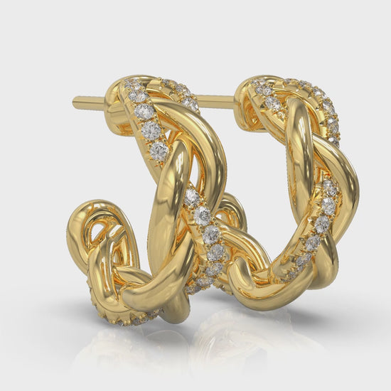 Alternating Diamond Twist Huggie Hoop Earrings