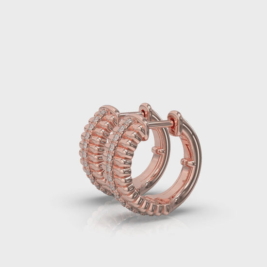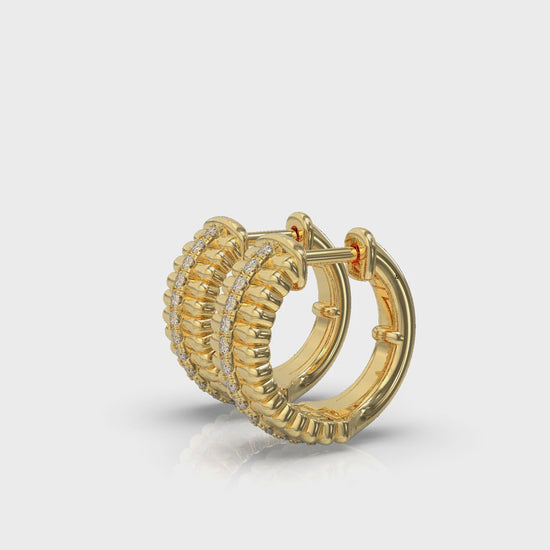 Fluted Huggie Earrings with Center Diamonds