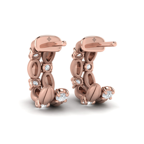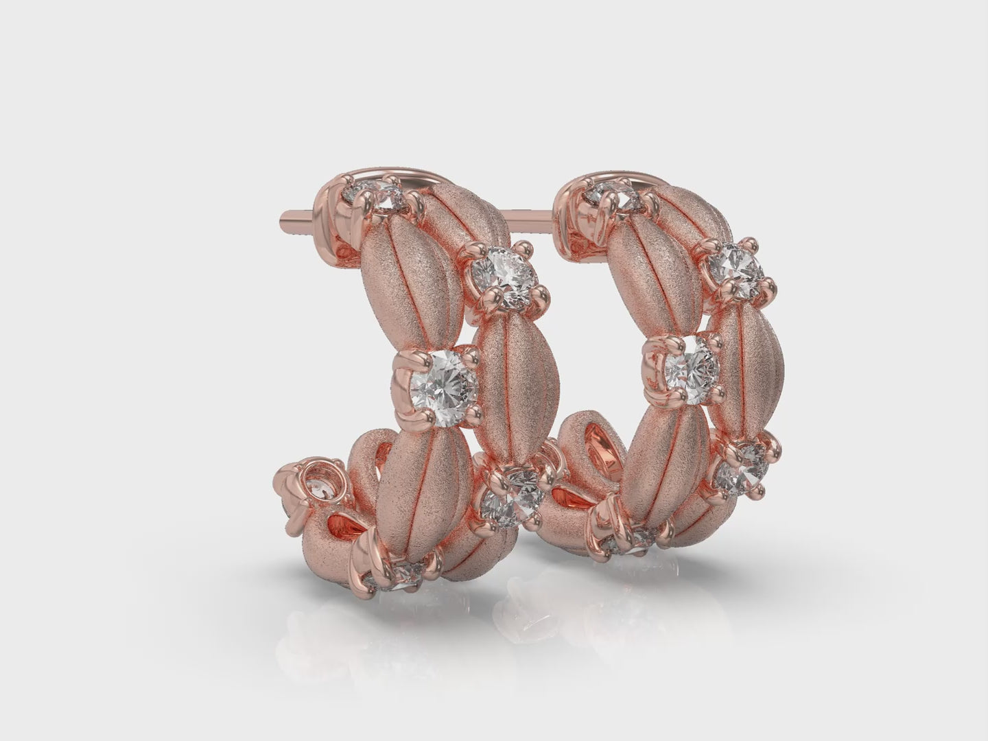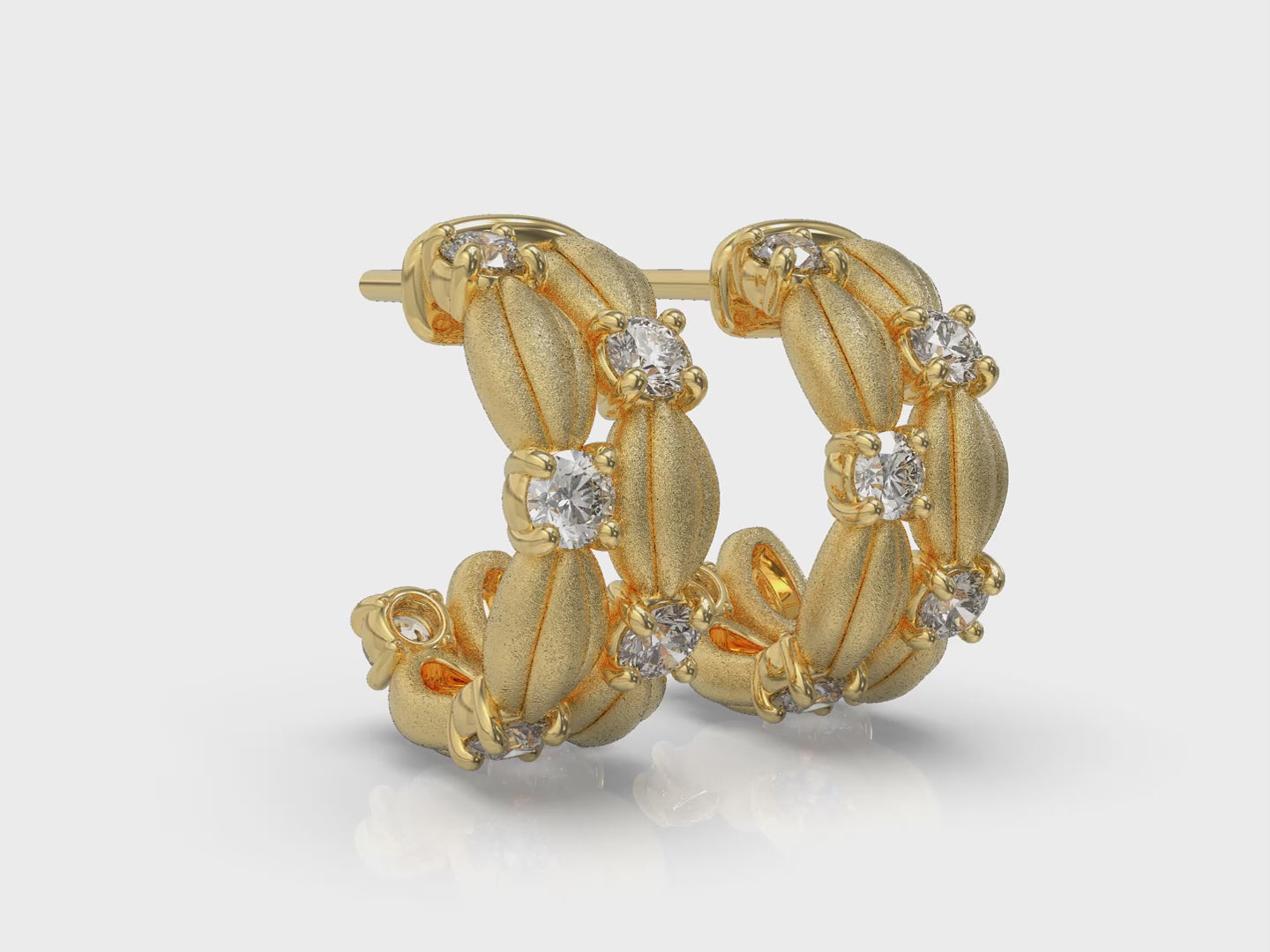 Inspired by golden summer days, these scuptural hoop earrings have two rows of brilliant diamonds sparkling and lighting up your face. The flowing lines of the design add dimension and every detail exudes timeless elegance. With a softly gleaming satin finish that holds light, they add sophistication to everything you wear.