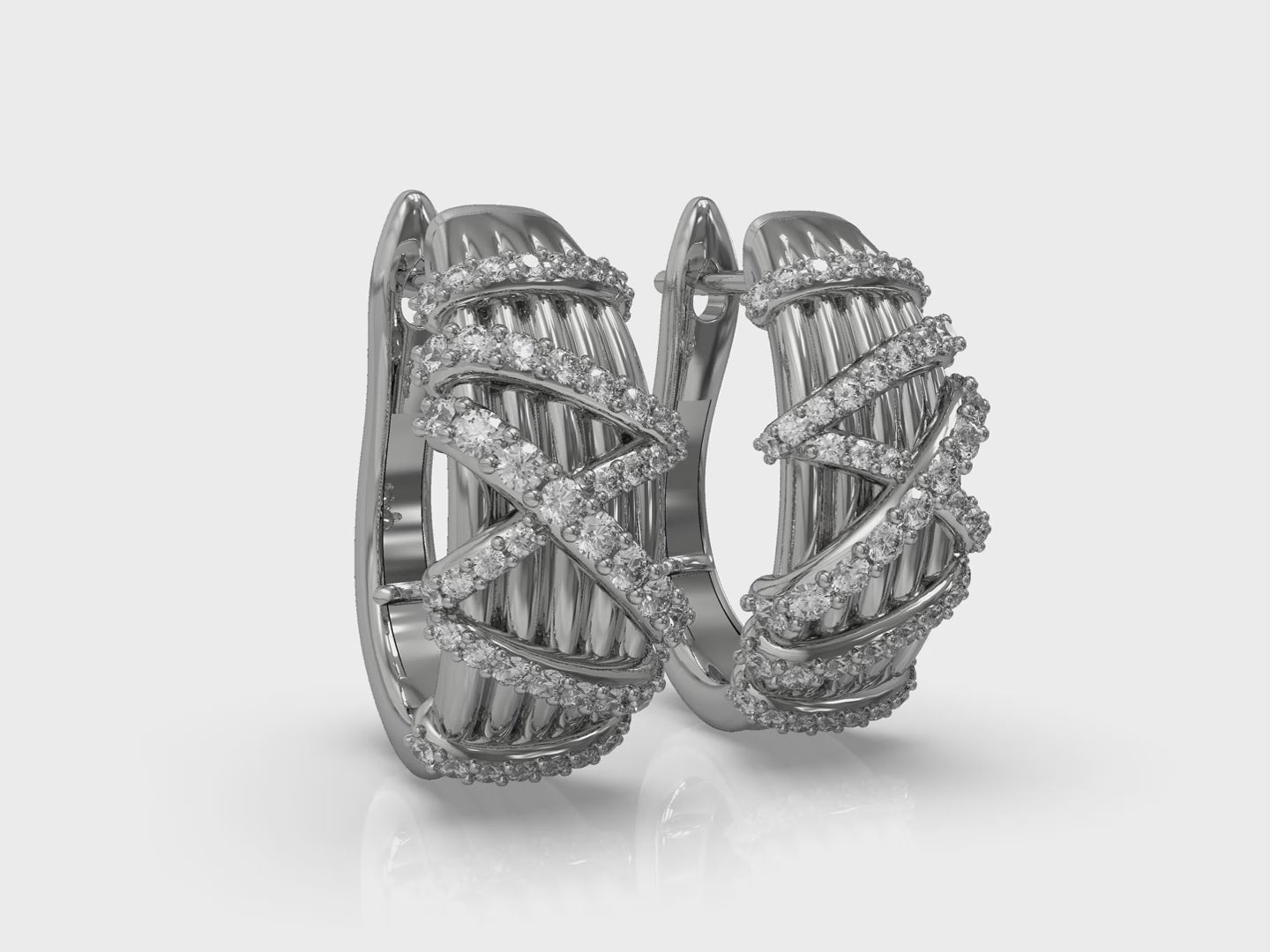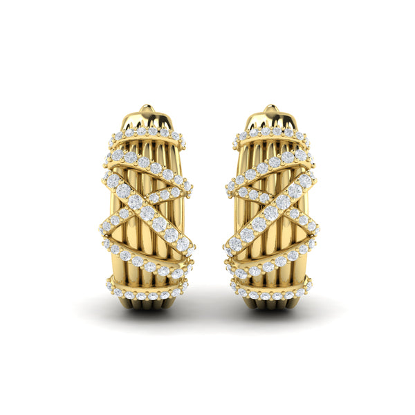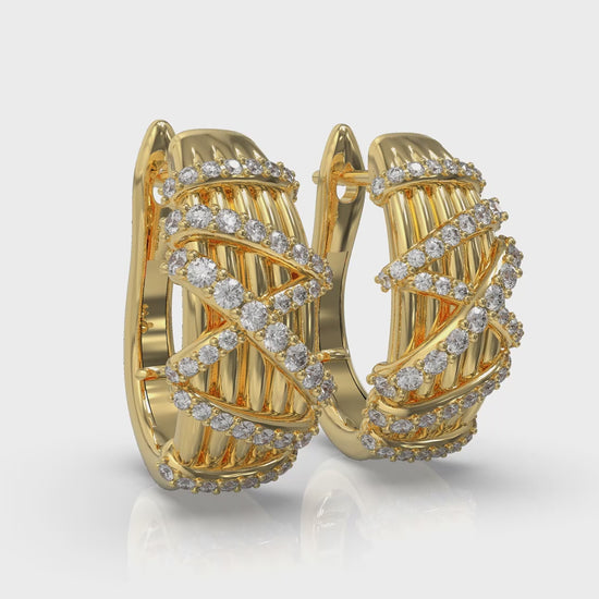 Radiant and sculptural, these earrings feature graceful ribbons of pavé diamonds crossing over a ribbed gold surface. The dimensional design captures light with every turn, blending modern artistry with timeless allure. Elegant from every angle, they bring a refined brilliance to both day and evening looks.