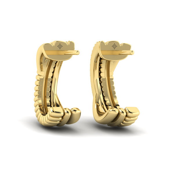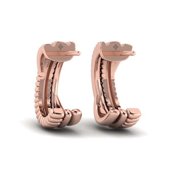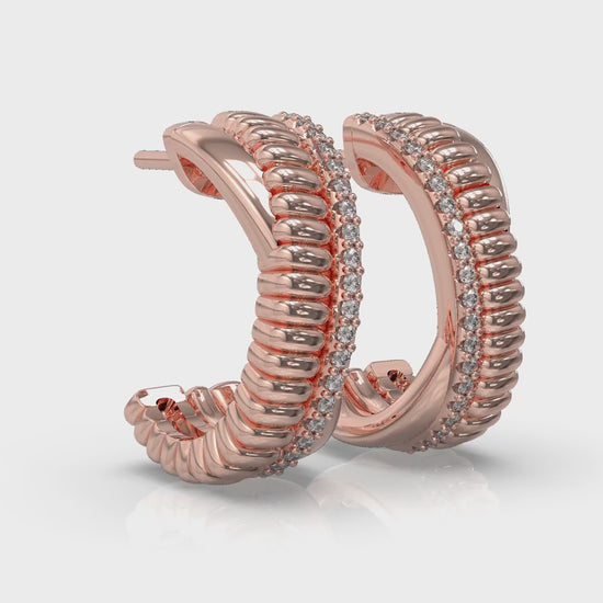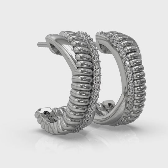 Embrace your fearless spirit with these elegant diamond hoop earrings, a celebration of elegance with edge. Created for women who lead with heart and shine without fear, the intertwined design captures the essence of courage and unity, with sparkling diamonds to symbolize your unwavering resolve. Wear them as a talisman of inner strength and radiant beauty.