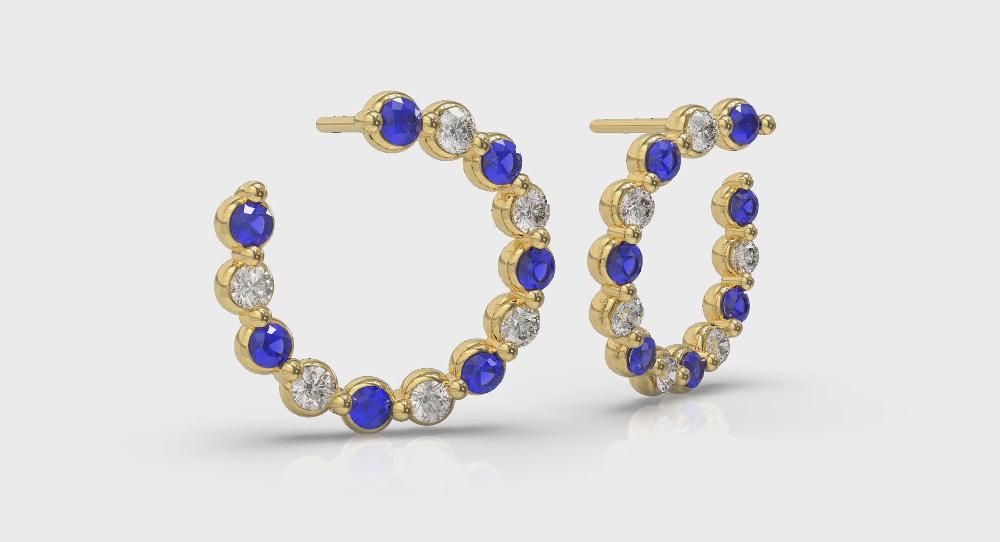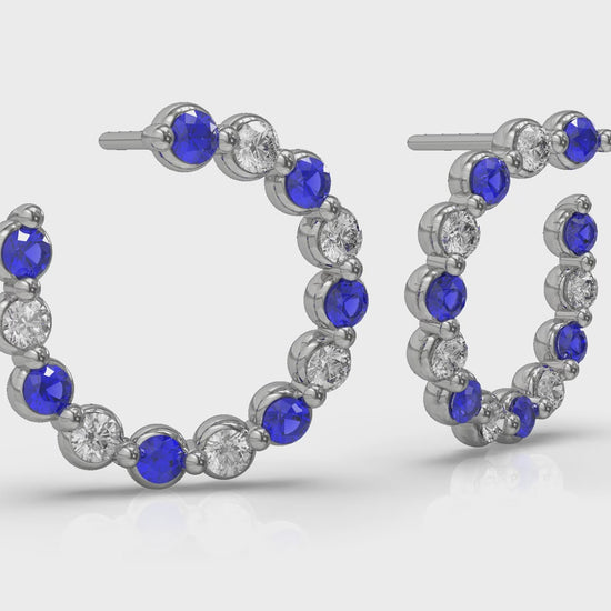 Forward-facing Diamond and Blue Sapphire Open Hoop Earrings