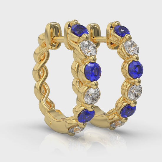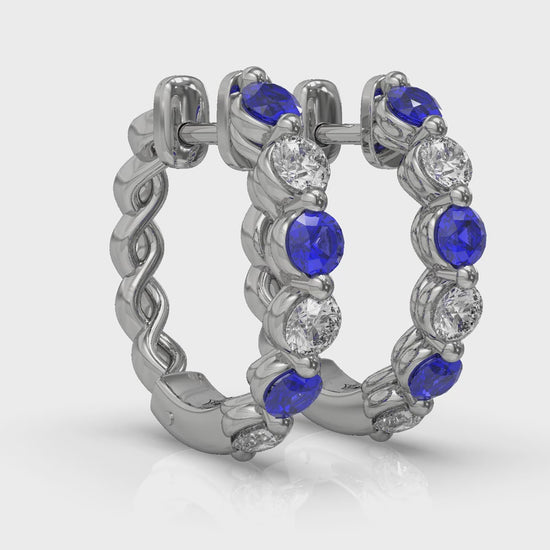 Diamond and Blue Sapphire Twist Hoop Earrings