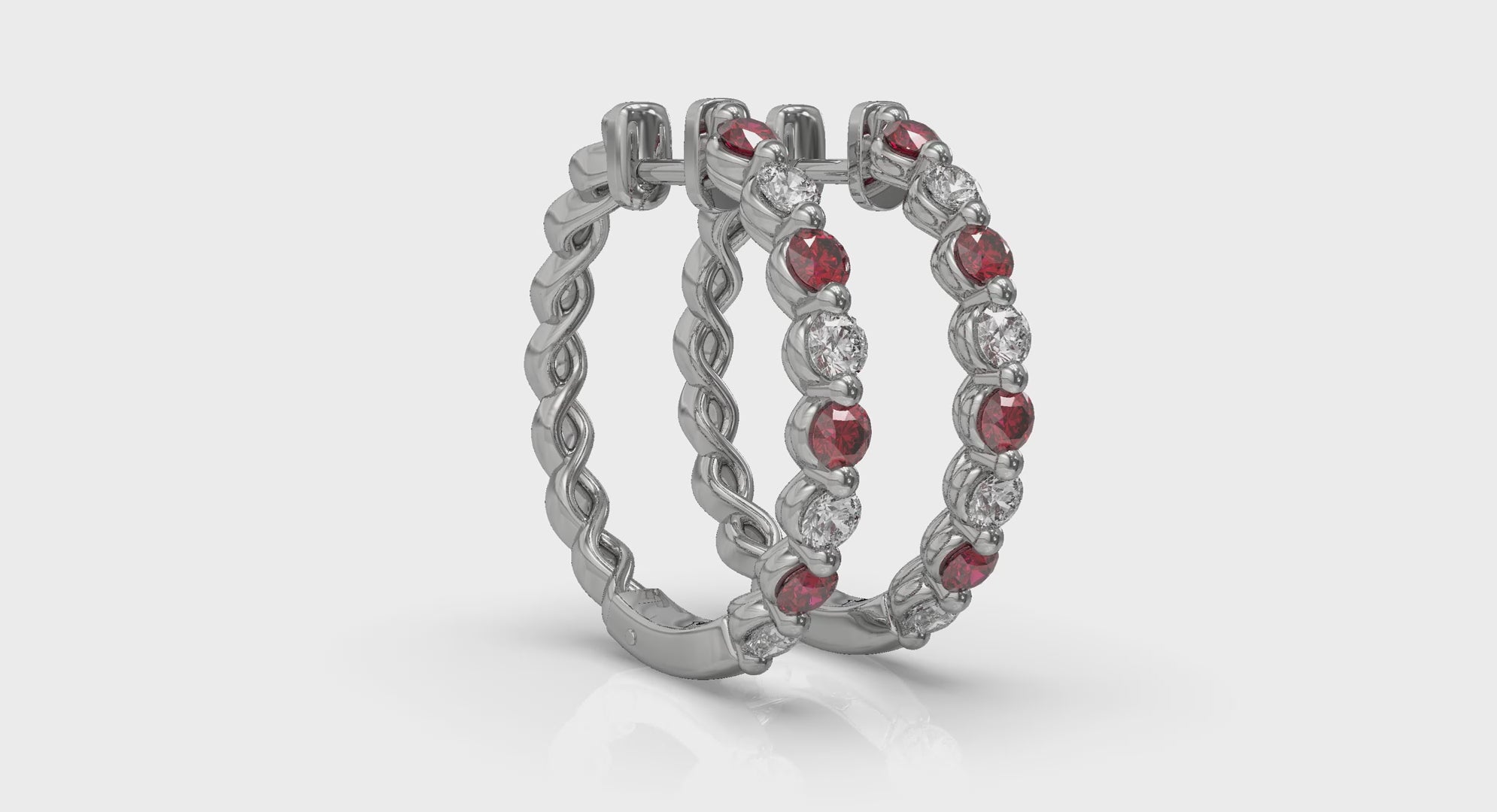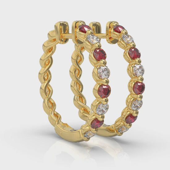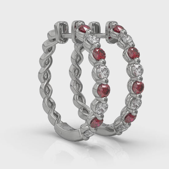 Diamond and Ruby Twist Hoop Earrings