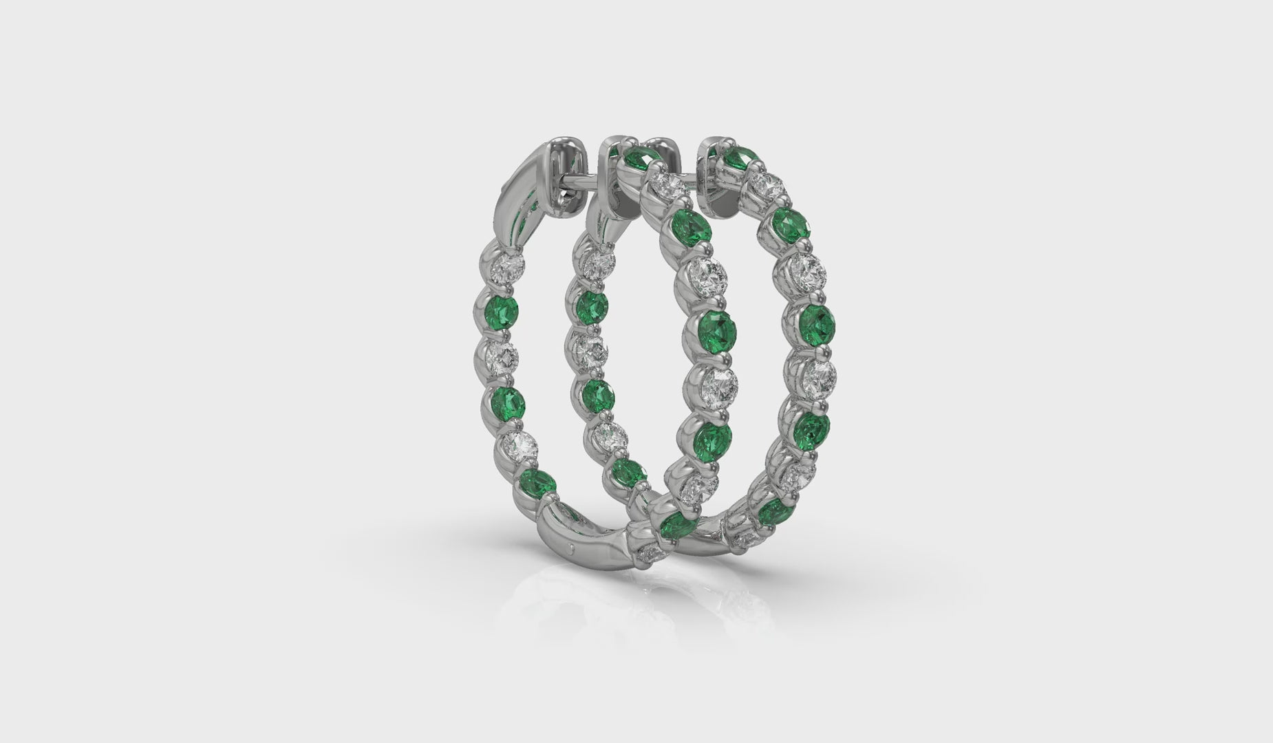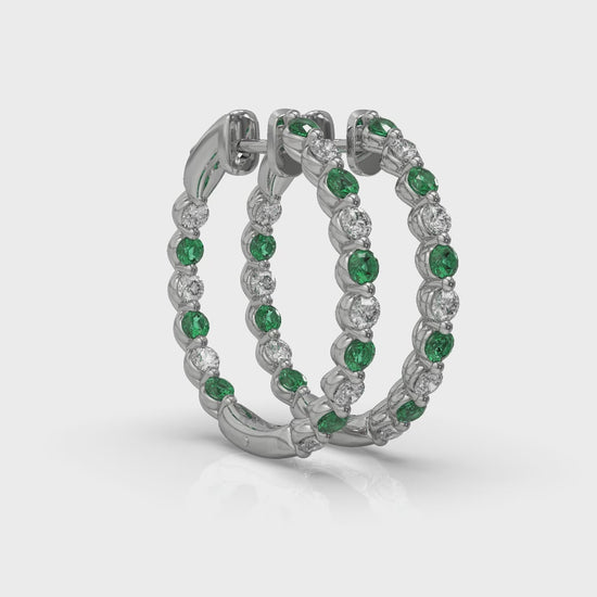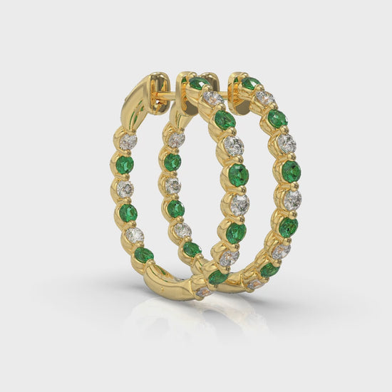 Inside Out Diamond and Emerald Hoop Earrings