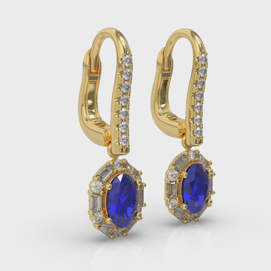 Oval Sapphire and Diamond Baguette Earrings