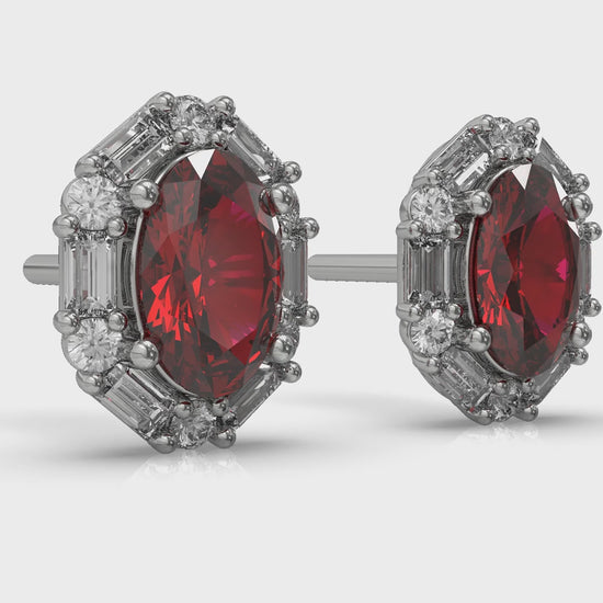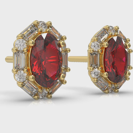 Oval Ruby and Diamond Baguette Earrings