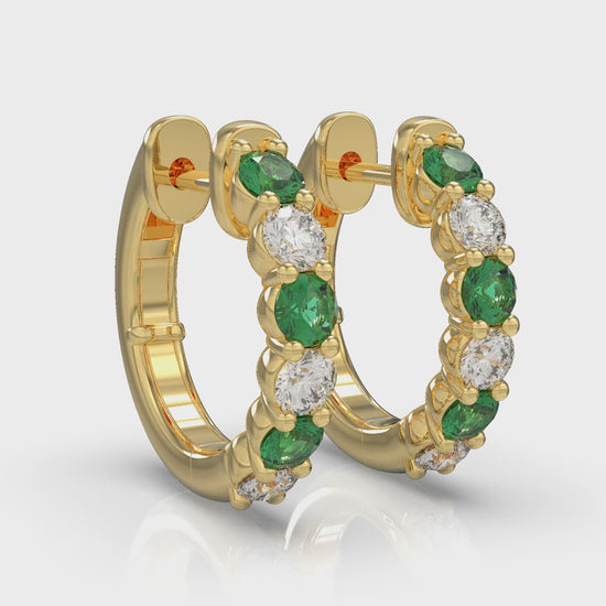 Forward-facing Diamond and Emerald Open Hoop Earrings
