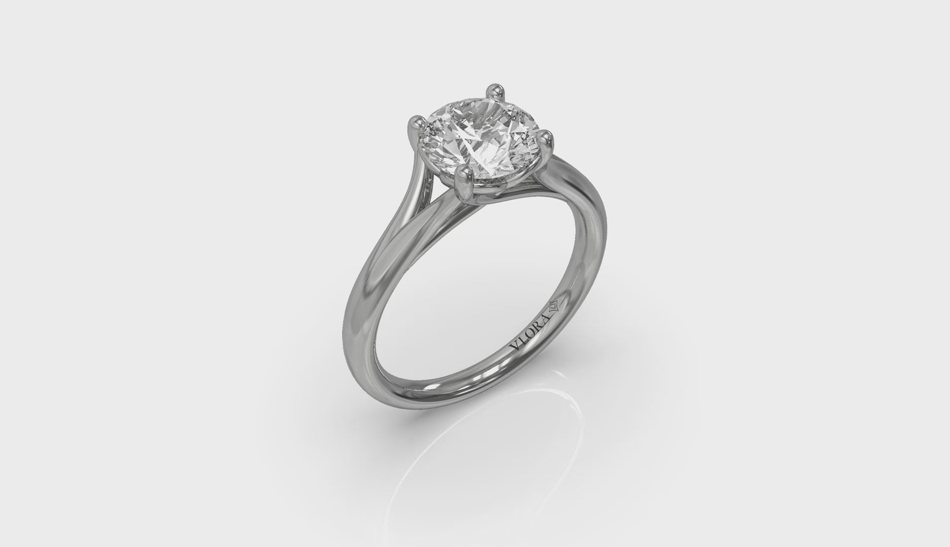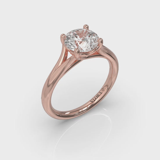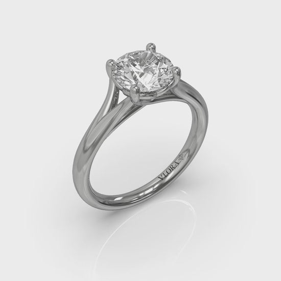 Simplicity is the ultimate form of sophistication. This simple classic engagement ring has every detail refined into perfection. The split shank flows seamlessly into the woven pattern of Vlora's signature V-shaped setting, which allows the cneter round brilliant diamond to sparkle in the light. It's a celebration of the simple perfection of a love that's forever.