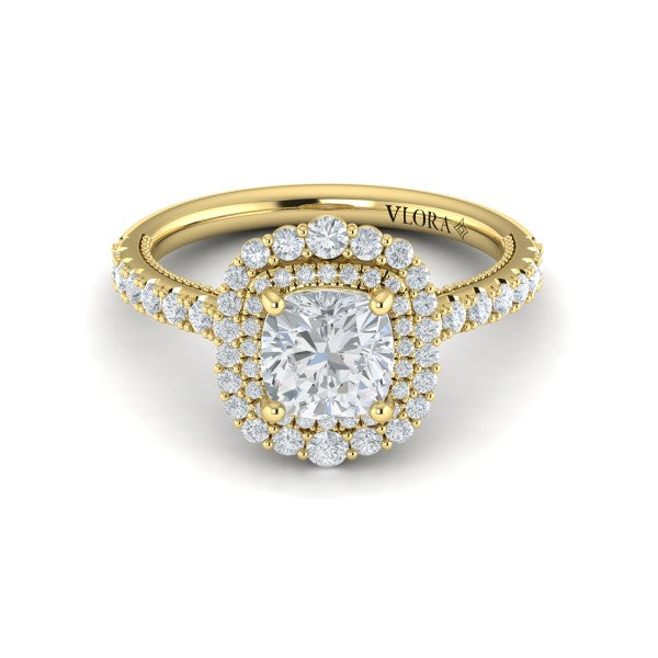Cathedral Arch Double Halo Cushion Engagement Ring