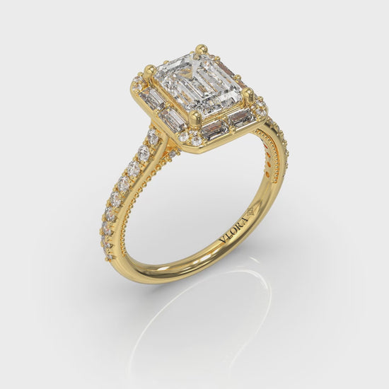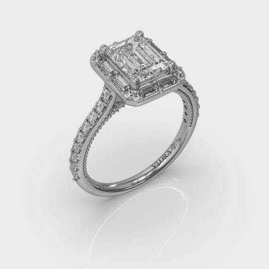 Deco Elegance Emerald Cut Halo Engagement Ring