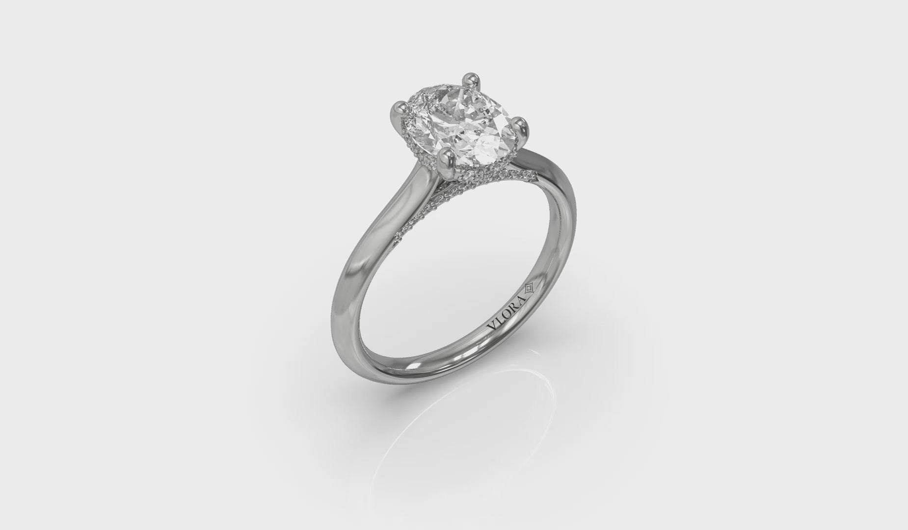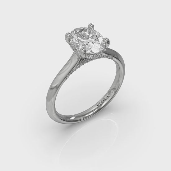 Solitaire Oval Engagement Ring with Hidden Halo