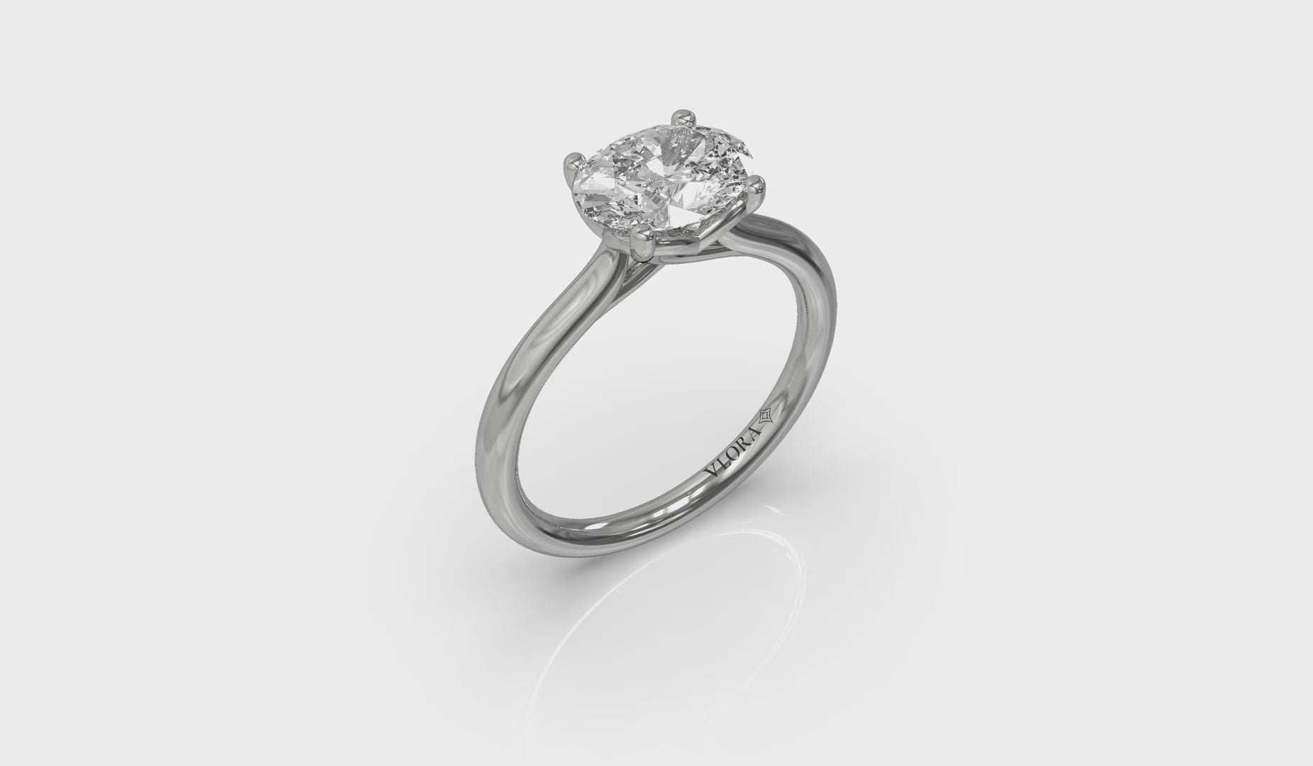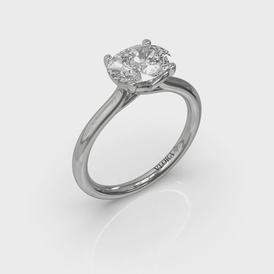 Celebrate one love forever with this solitaire oval engagement ring with a twist. The east-west set oval diamond catches the light brilliantly in Vlora's signature V-shaped setting. The woven strands of the cathedral setting symbolize two souls intertwined, a perfect metaphor for your journey together. The design highlights the elegance of the diamond, allowing its brilliance to be the center of attention—a fitting tribute to a lifetime filled with love.