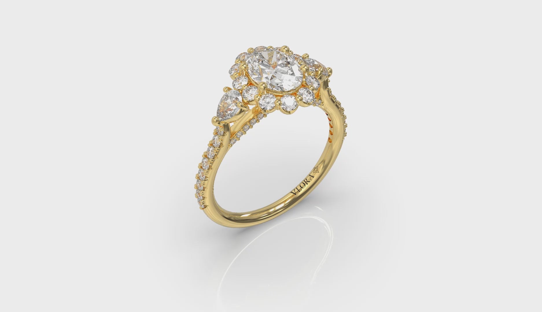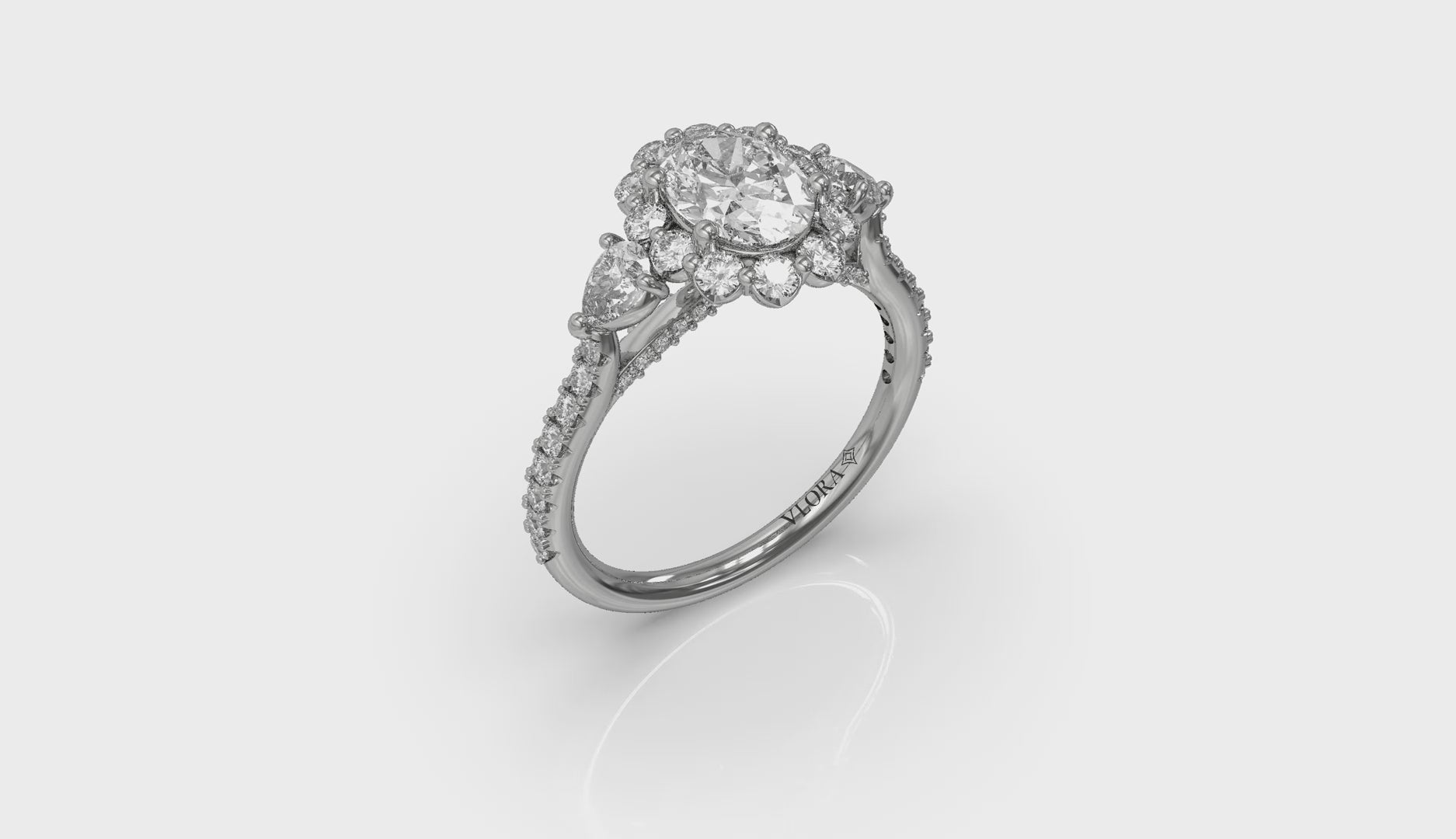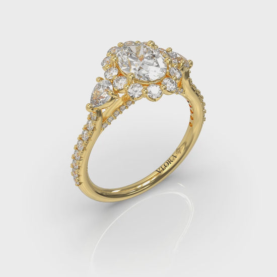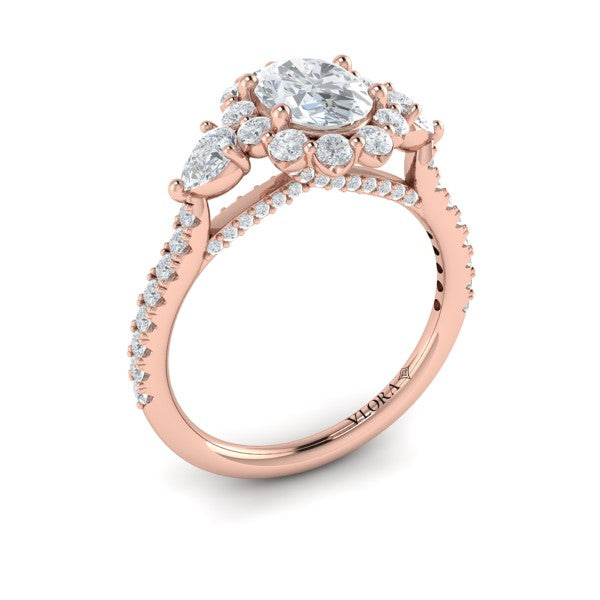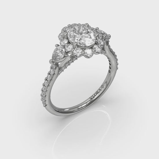 Blossom Halo Oval Engagement Ring with Pear Side Diamonds