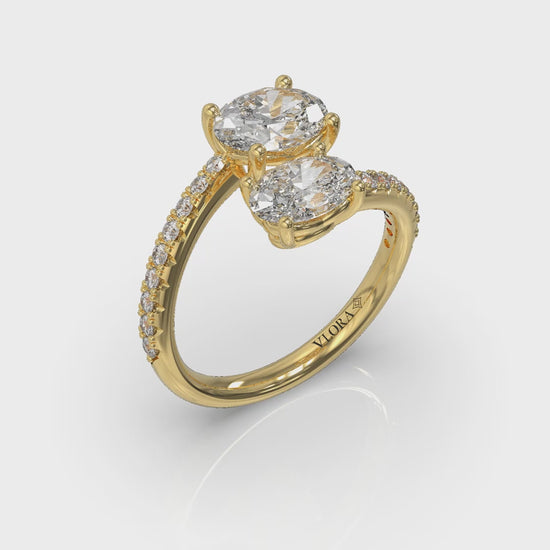 Like two souls becoming one, two elegant oval diamonds are joined forever in one gorgeous toi et moi engagement ring. Inspired by the vintage toi et moi ring that Napoleon gave Josephine in one of history's great love stories, this romantic two stone engagement ring with kissing diamonds embracing in the center is a stunning statement of devotion. A diamond pave trails across the finger like comet tails streaking across the night sky. It's a celebration of your own great love story that is crafted to last.