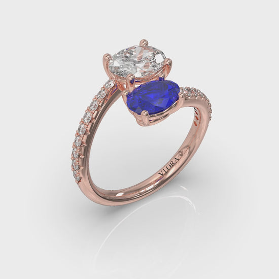 Kissing Diamond and Sapphire Engagement Ring