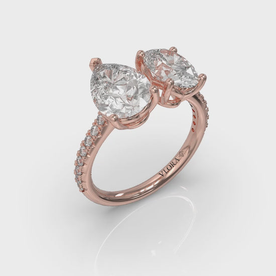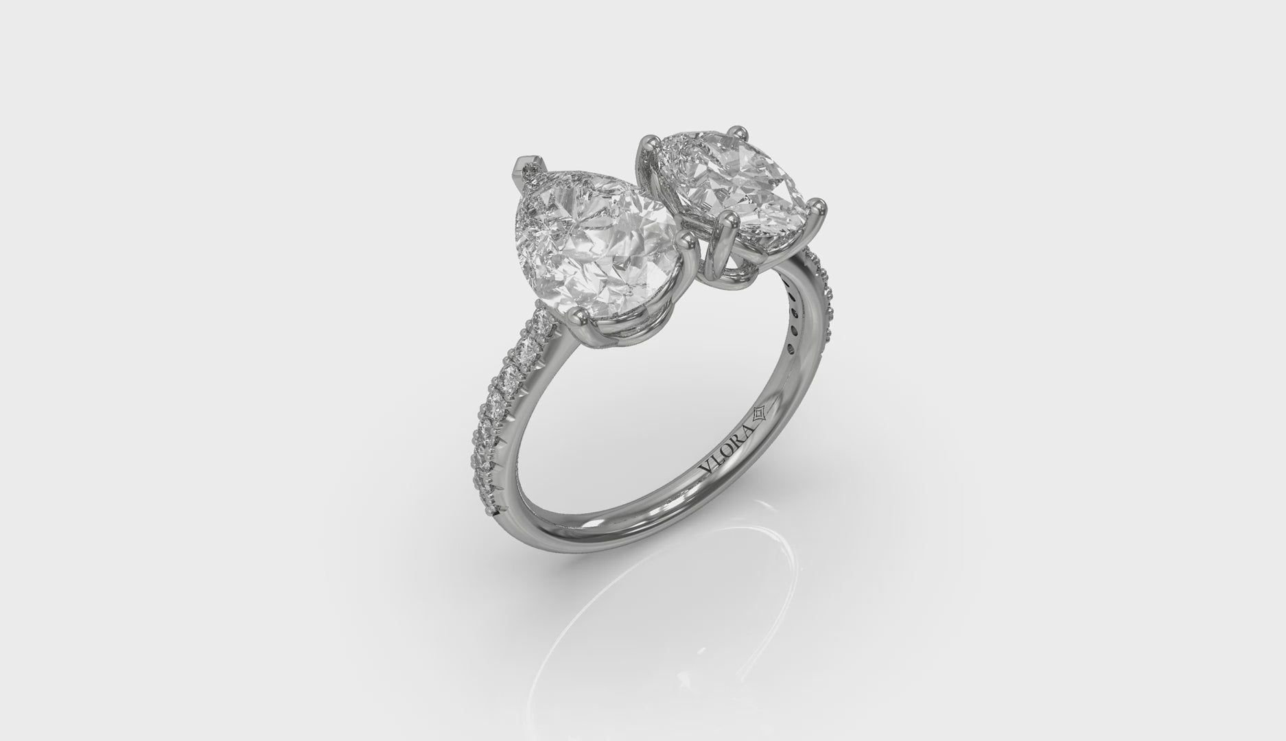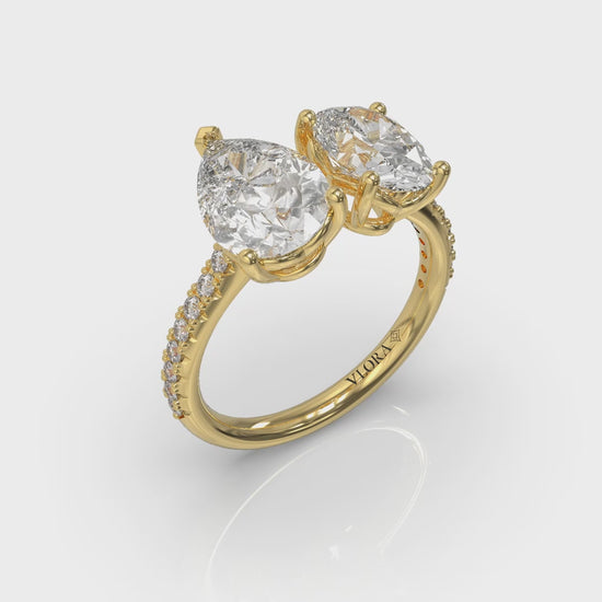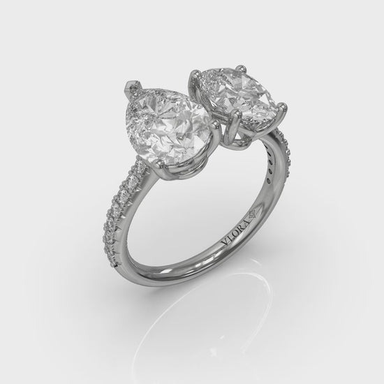Experience the beauty of a love that's a true meeting of minds with this unique toi et moi engagement ring. Featuring an exquisite oval and elegant pear-shaped diamond meeting in the center, this ring symbolizes two souls embracing. A sparkling diamond band celebrates the journey of your love story. A harmonious pairing that speaks of romance and unity, this unique engagement ring captures the essence of a lifelong commitment shared by two hearts.