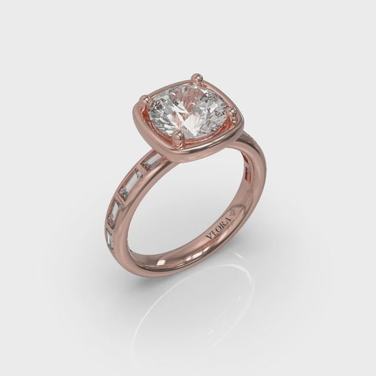 Sleek geometry meets timeless romance in this Art Deco–inspired engagement ring. The round brilliant center diamond glows within a softly squared bezel, creating a perfect balance of curves and edges. Along the band, channel-set baguette diamonds form a luminous path of light, symbolizing a love defined by clarity, strength, and modern grace.