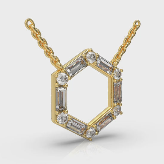 Diamond Baguette Open Honeycomb Pendant Necklace