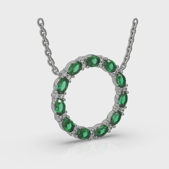 Oval Emerald and Diamond Open Circle Pendant Necklace