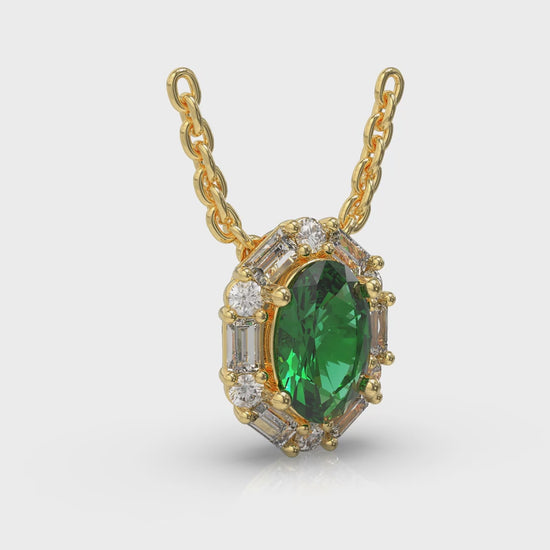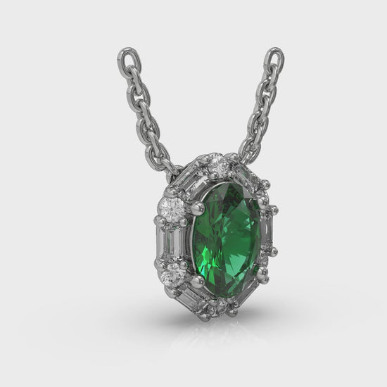 Oval Emerald and Diamond Baguette Pendant