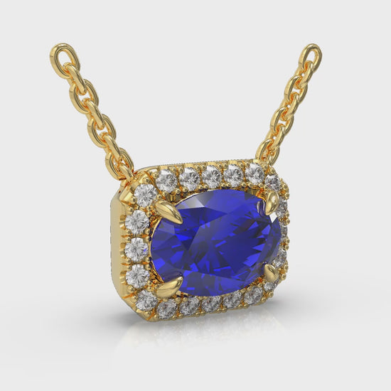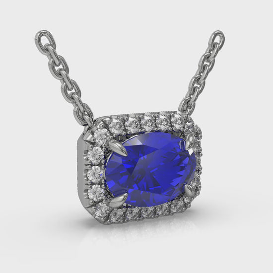 Diamond Cushion Halo and Oval Sapphire Necklace