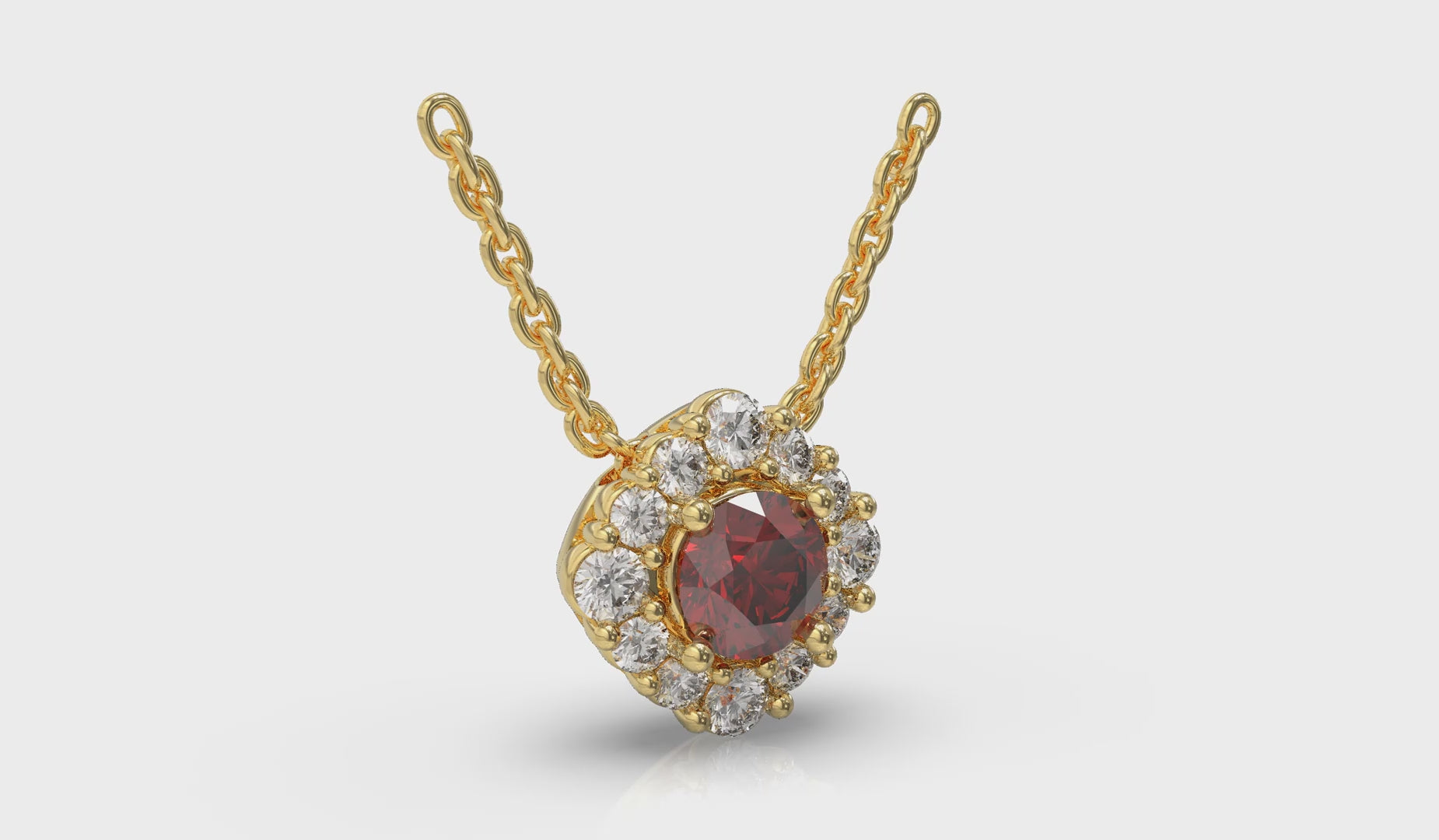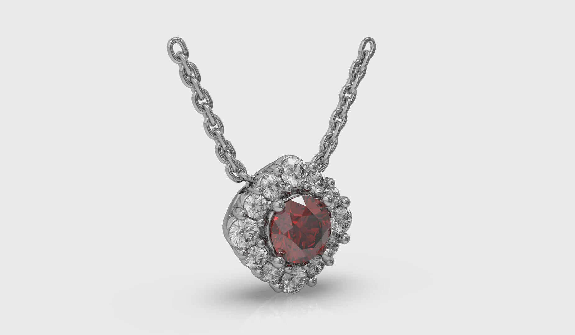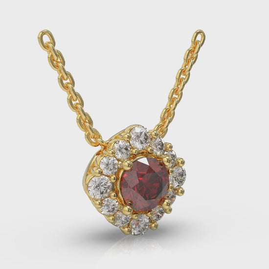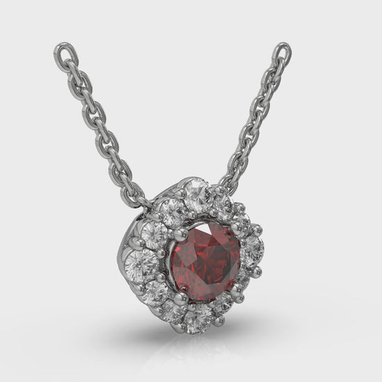 Diamond Halo and Round Ruby Center Pendant