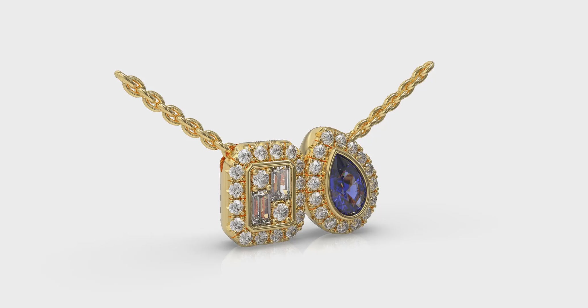Diamond and Sapphire Toi et Moi Pendant