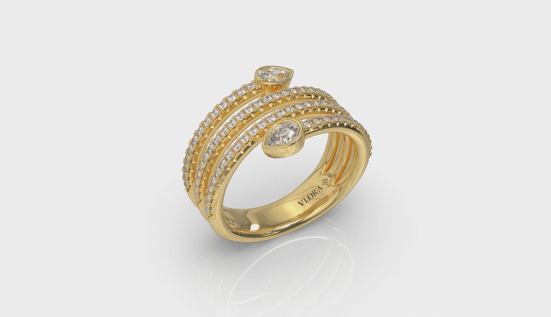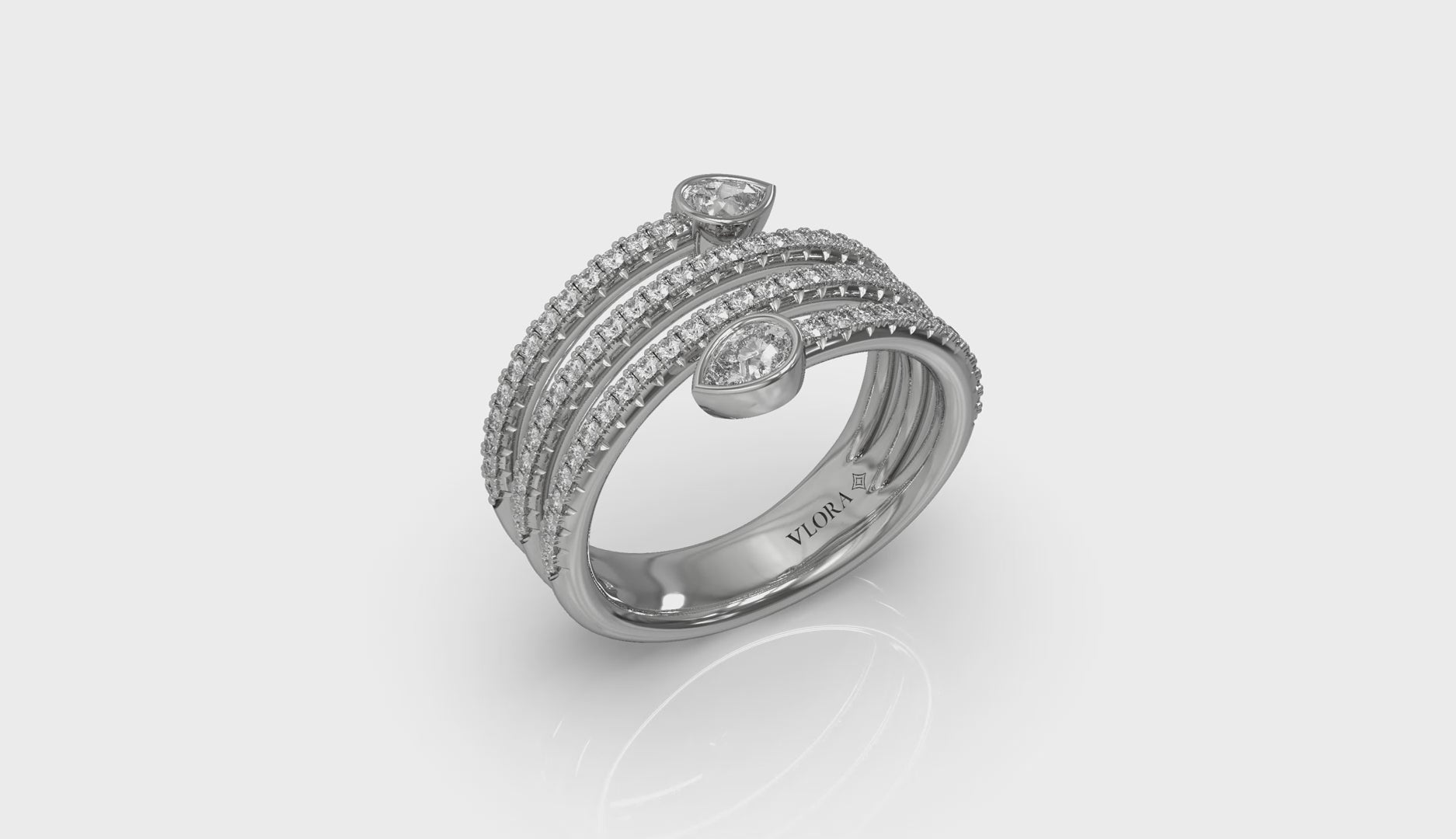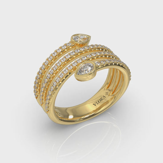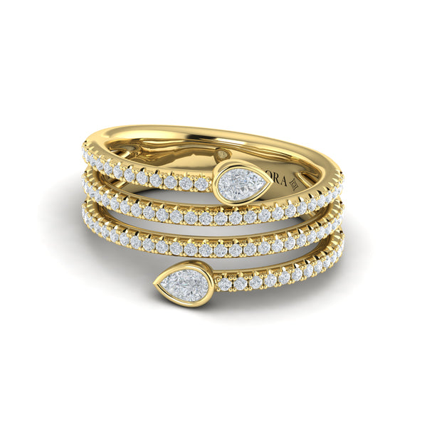 Diamond Three Row Diamond Pear Wrap Ring