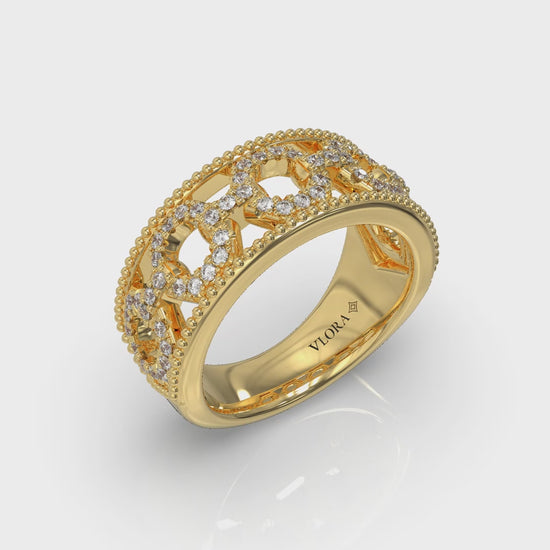 Diamond Open Honeycomb Link Ring