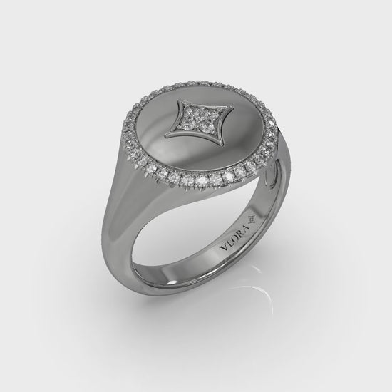 Center Star Diamonds and Bezel Signet Ring