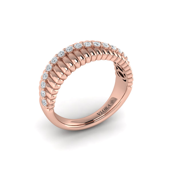 Catching the sun, the fluted texture of this sculptural band ring gleams on your finger. A brilliant curve of diamonds sparkles in the center like an ocean wave dancing in the light. Wearing this boldly beautiful design, you'll add the relaxed luxury of a beach vacation to everything you wear.