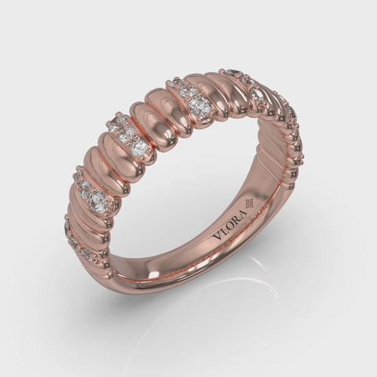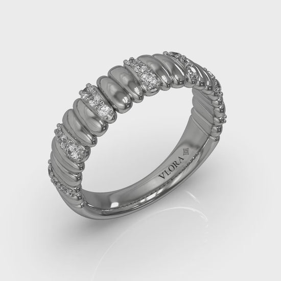 A testament to strength and elegance, this ring features wrapped strands that symbolize unity and connection. The gleaming polished surface catches the light, serving as a constant reminder to shine with confidence in every situation. Sparkling diamond threads represent the power to overcome every challenge. Wear it to express your power and grace.
