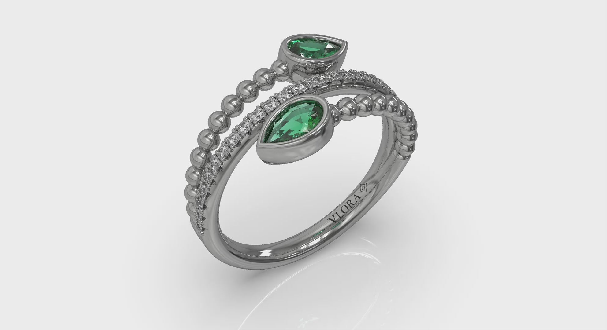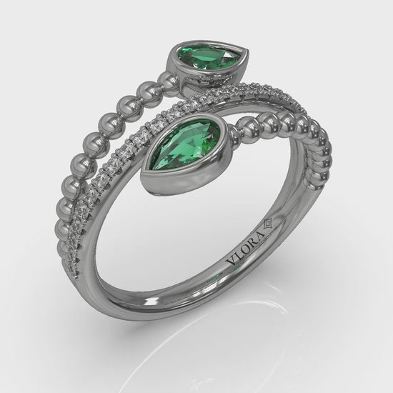 Bezel Set Pear shaped Emerald and Diamond Wrap Ring