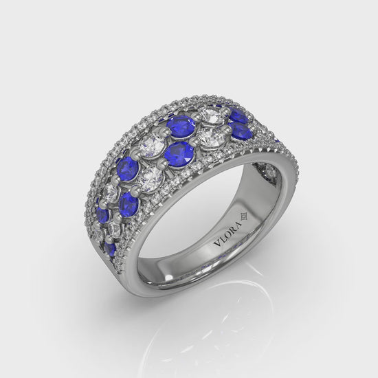 Diamond and Blue Sapphire Cluster Statement Ring