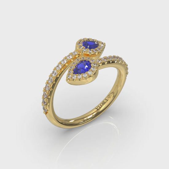 Diamond Wrapped Pear Blue Sapphire Ring