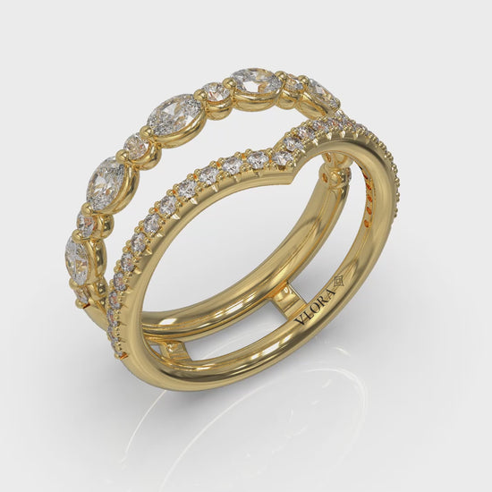 Embrace your engagement ring in brilliance with this ring enhancer designed to interlock with your engagement ring. It's designed as a stackable wedding band set in one ring, with round brilliant diamonds set in shared prong settings for maximum sparkle. It's a beautiful way to turn a simple engagement ring into a dramatic statement, symbolizing love's power to transform our lives forever.