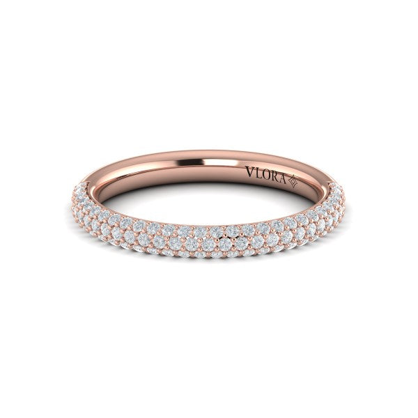 Matching Band for VSC20097. This luxurious yet classic engagement ring style has a sparkling rounded pave band. The center diamond shines like a beacon, with refined details executed with meticulous craftsmanship. The substantial band of diamonds illuminates your finger so that all you see is brilliance. You’ll never tire of looking at it, like the eternal beauty of a sky filled with stars.