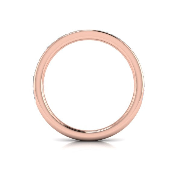 Matching Band for VSC20100. Sleek and chic, this simple classic engagement ring makes a dramatic statement. A shining ribbon of channel-set baguette diamonds falls like a waterfall from a dramatic cathedral engagement ring setting. A surprise diamond bezel set under the round center stone on the profile adds extra sparkle. It's a breathtakingly brilliant tribute to a love that shines bright.